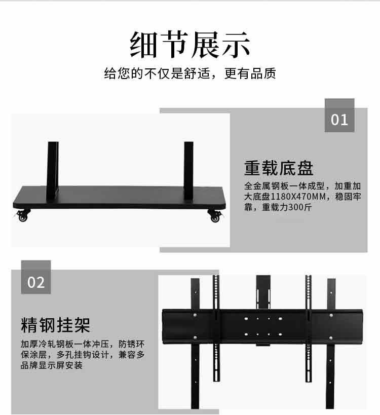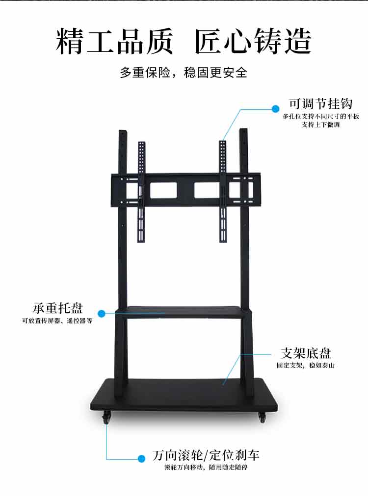 黑色教學會議移動支架專用液晶電視、廣告機、觸控91视频免费版下载、電子白板、教學會議等,高低升降,隨意調節。