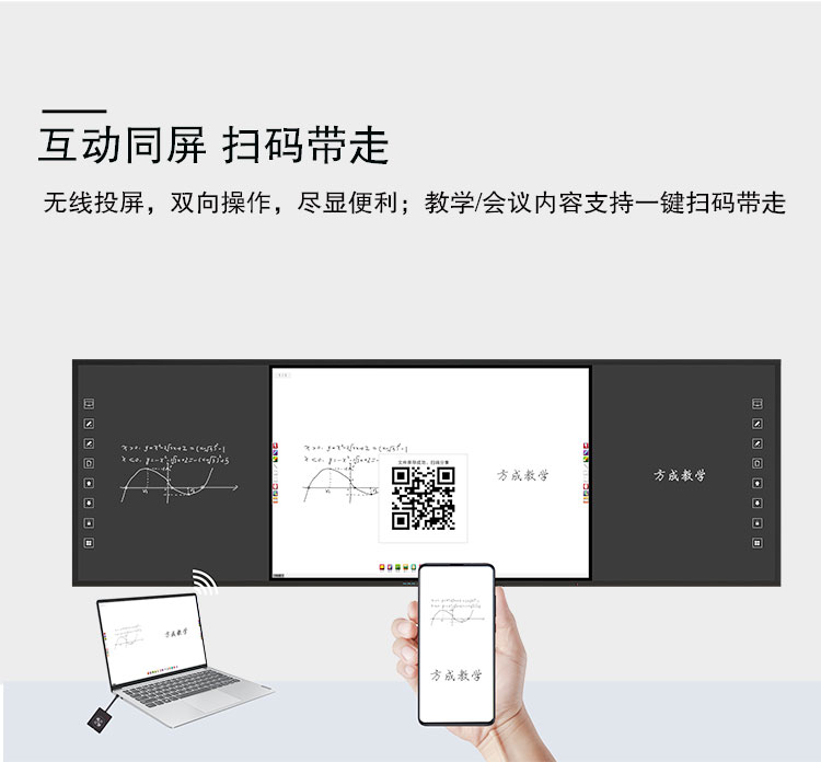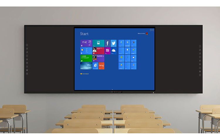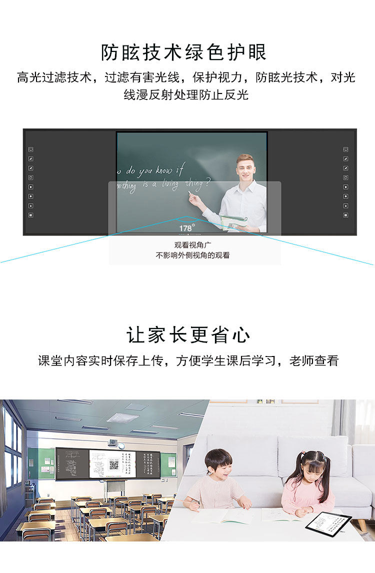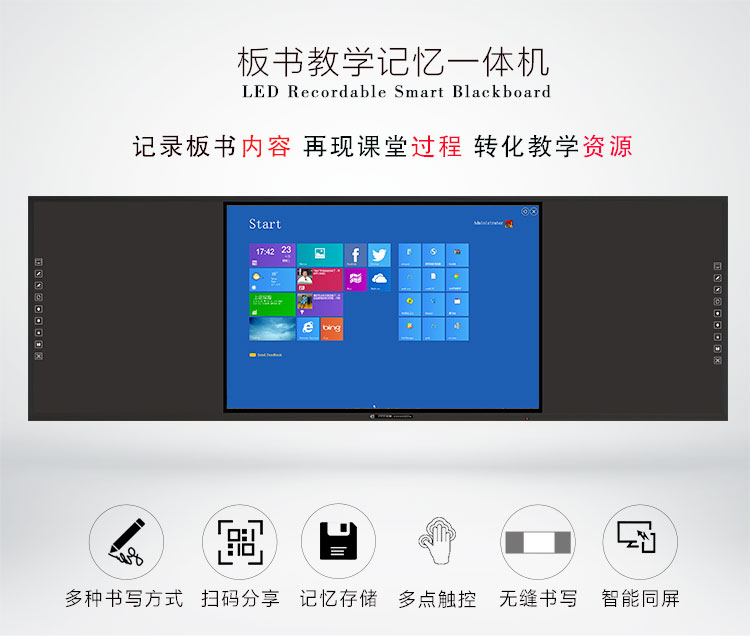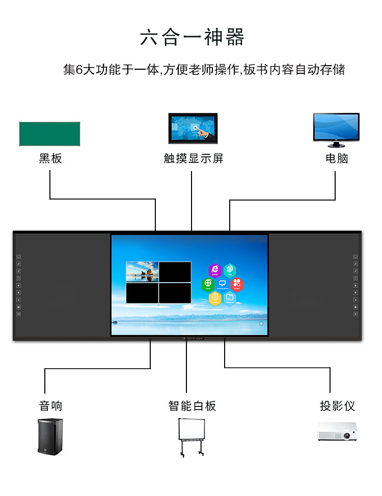 智慧91视频黄色版-集電腦、音箱、展台、智能中控、白板於一體,采用一體化無縫拚接設計美觀大氣,電控展台方便收納,紅外二十點觸控滿足多人同時書寫,板麵采用冷軋麵板防撞防刮,尺寸擴展性強,滿足不同教學場景需求。