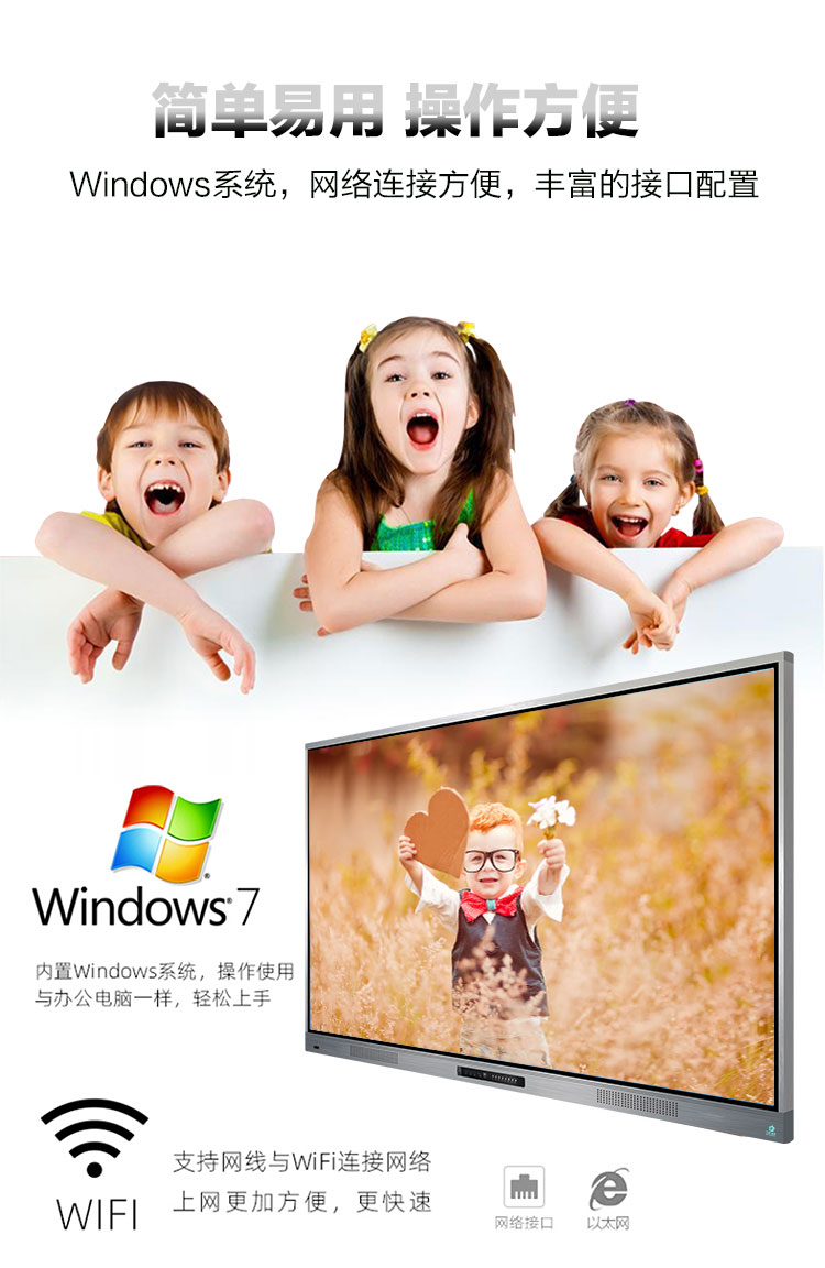 3、超窄邊框時尚外觀,教學會議都適用