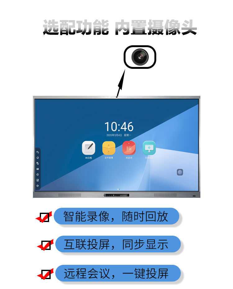 5、時尚精簡外觀,會議一鍵啟動(這條特點針對於S款不帶推拉門的會議平板91视频免费版下载,主要應用在會議場所用)